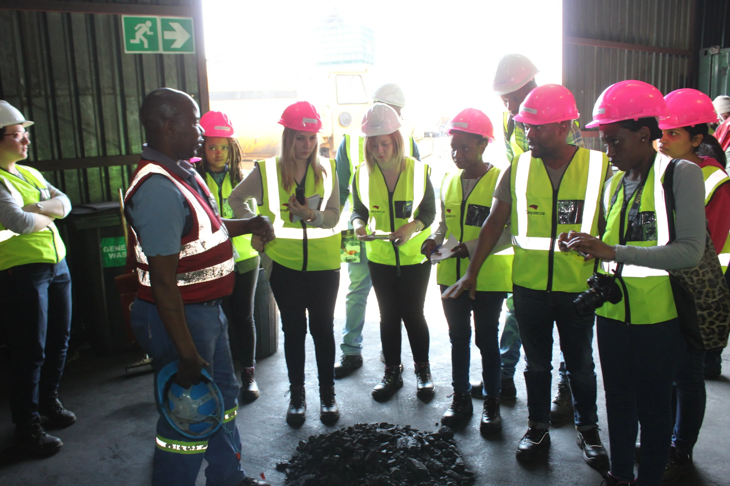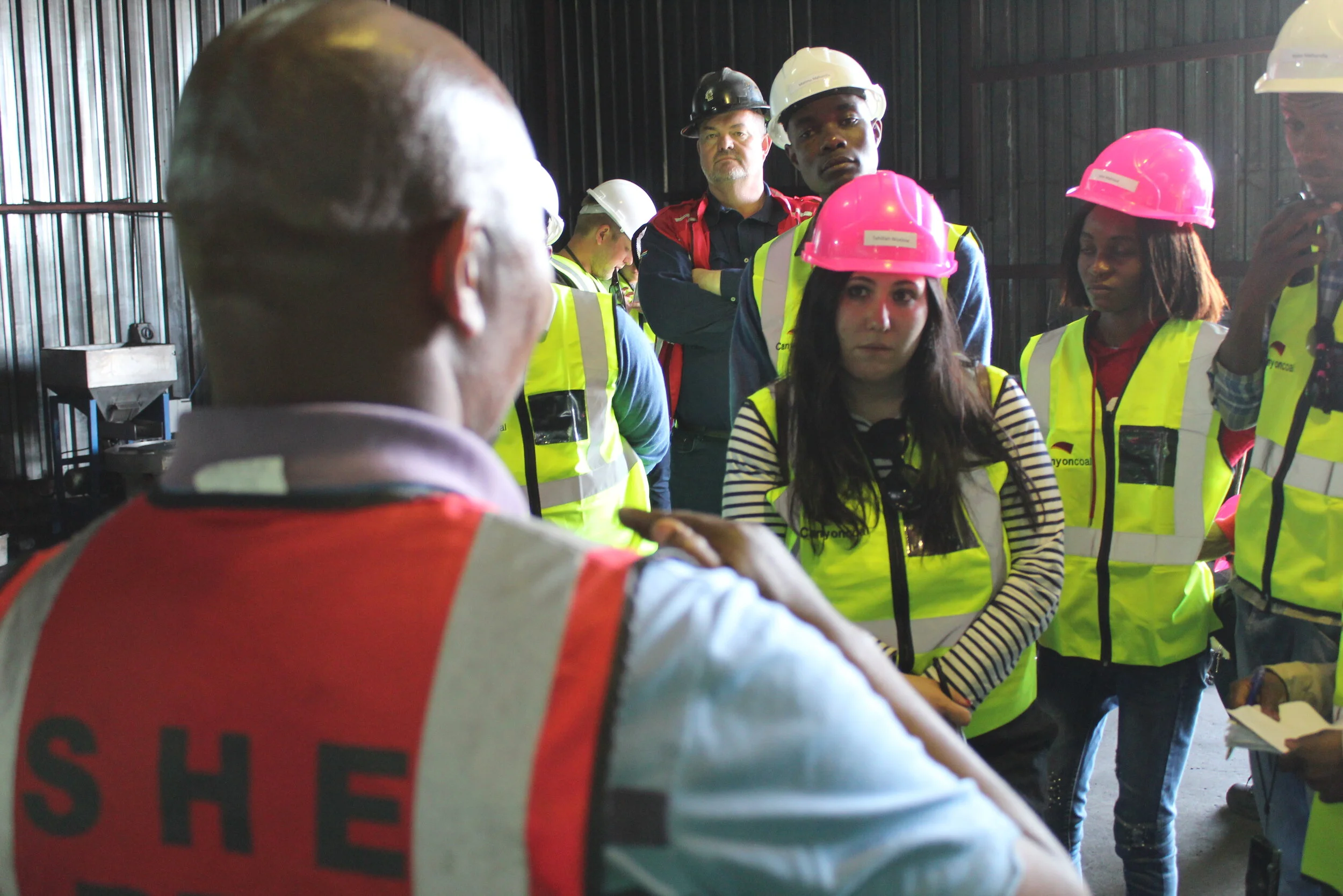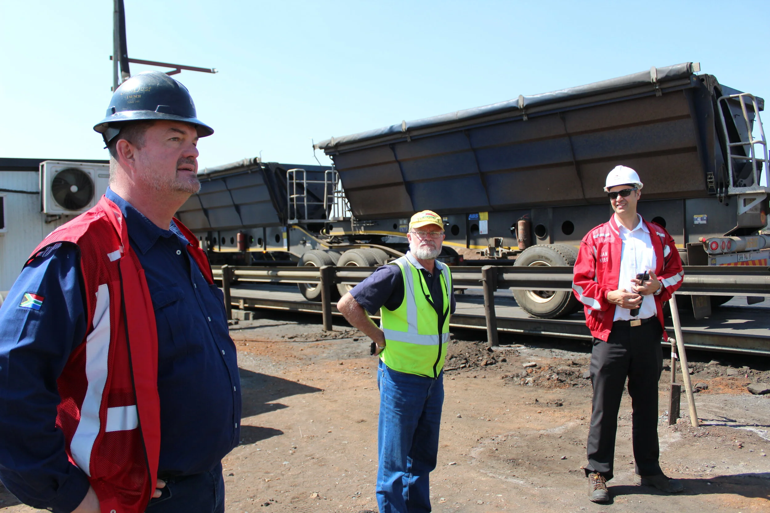 GM Alan Mabbett, Weighbridge Manager Naas Neveling, and Security Manager Jan Kies started the tour with a brief explanation of safety and security protocols as coal is transported out the mine by trucks at the weighbridge.
